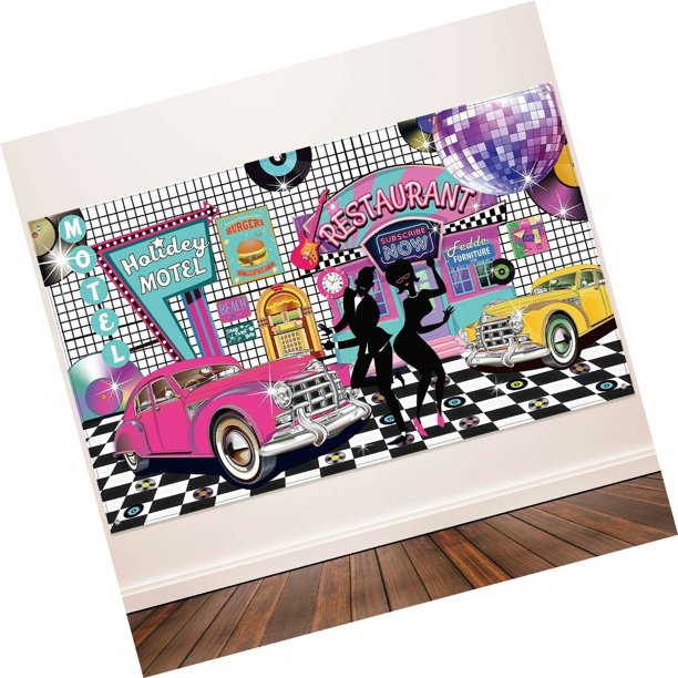 72 8 X 43 3 Inch 50s Theme Party Decorations Rock And Roll Party Backdrop Party Banner Classic 50s Backdrop Banner For 1950s Party Decorations Banners