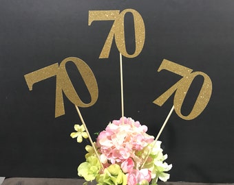 70th Birthday Centerpiece Sticks Glitter 70th Birthday Birthday Party Table Decorations 70th Birthday Decorations Birthday Party Tables