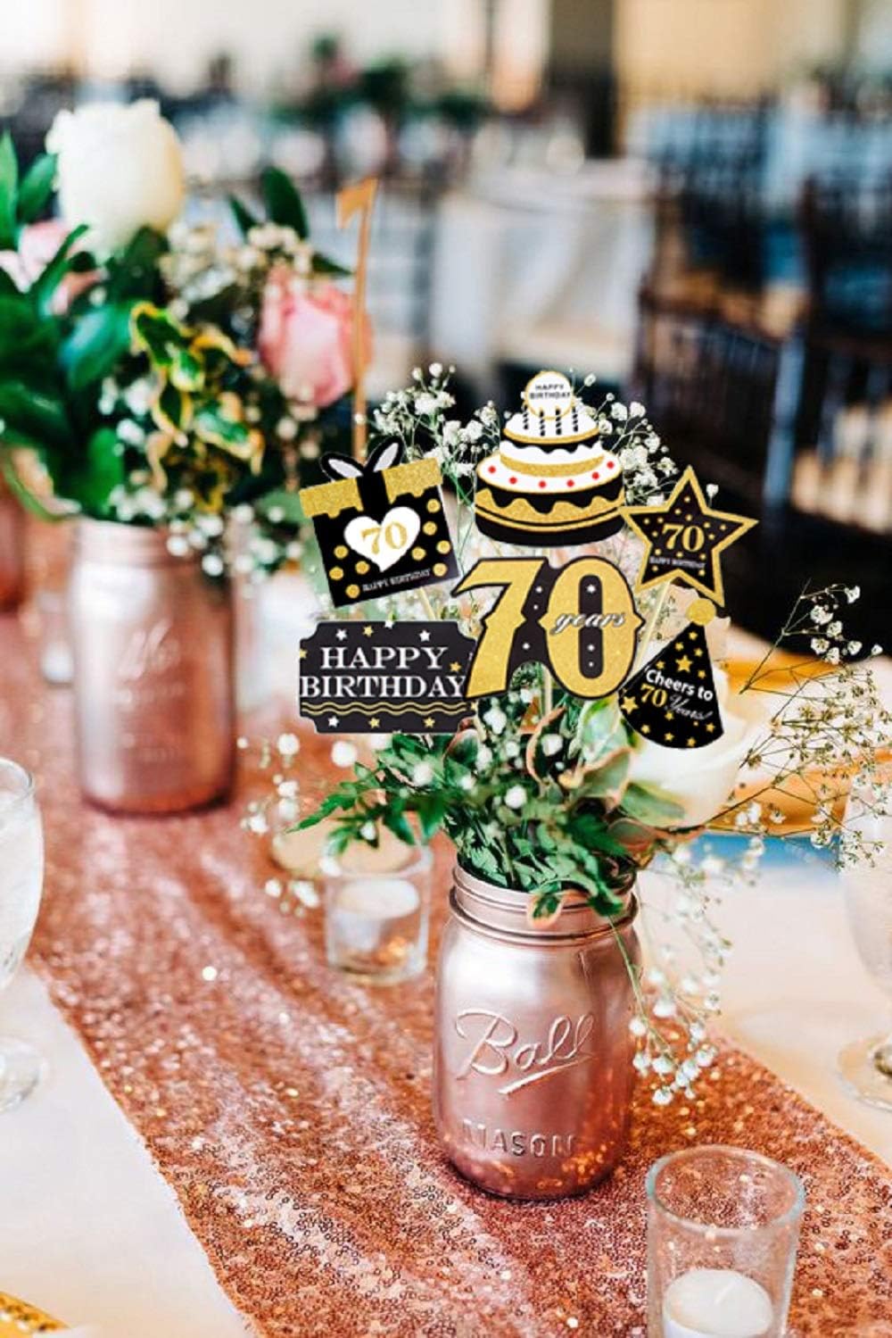 Jevenis Set Of 24 Black And Gold 70th Birthday Party Centerpieces For Table 70th Birthday Party Supplies 70th Centerpieces 70th Birthday Decor 70th Birthday Party Decorations Art Craft Supplies Party Supplies
