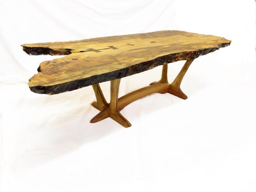 112 In By All Wood Furniture In Cresco Ia Walnut Veneer Top Two Tone Dining Set