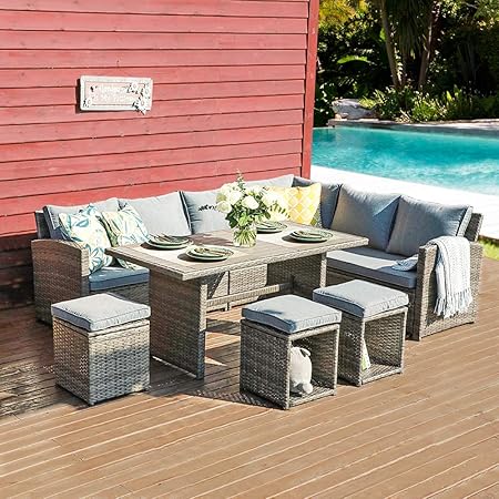 Amazon Com Joivi Patio Furniture Set 7 Pieces Pe Rattan Wicker Dining Sofa Set Outdoor Patio Furniture With Ottoman And Aluminium Table Gray Garden Outdoor