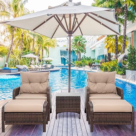 Amazon Com Homall 4 Pieces Outdoor Patio Furniture Sets Rattan Chair Wicker Set Outdoor Indoor Use Backyard Porch Garden Poolside Balcony Furniture Sets Clearance Brown And Beige Garden Outdoor