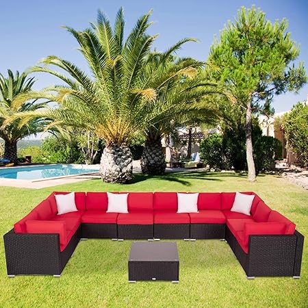 Amazon Com Patio Furniture Set Backyard Sofa Couch 11 Pieces Outdoor Deck Furniture Pe Rattan Wicker Sectional With Table And Pillows Kitchen Dining
