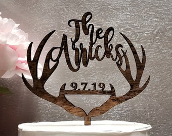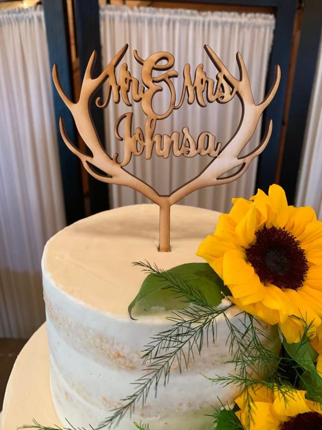 Amazon Com Personalized Antler Wedding Cake Topper Script Name Wedding Cake Topper Rustic Wedding Cake Topper Country Wedding Cake Topper Handmade