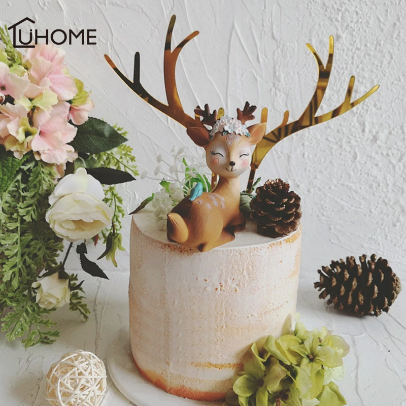 Cake Topper Gold Acrylic Elk Antler Decor For Christmas Wedding Party Supplies Diy Pine Cone Cute Sleeping Elk Home Cake Decor Cake Decorating Supplies Aliexpress