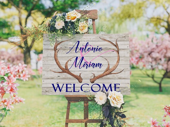 Wedding Welcome Sign Wedding Entrance Sign Deer Antlers Etsy