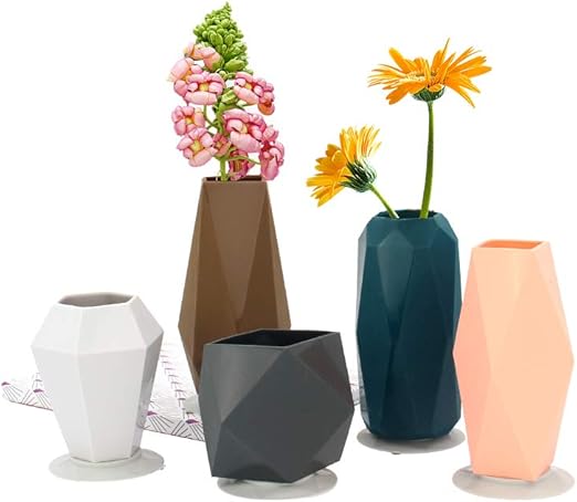Amazon Com Geometric Silicone Vase Set With Suction Cups Decorative Small Flower Vases For Home Decor Living Room Office Centerpieces Table And Wedding Set Of 5 Kitchen Dining