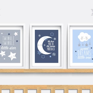 Blue Owls Baby Boy Nursery Wall Art Prints Personalized Baby Nursery Decor Dream Big Little One