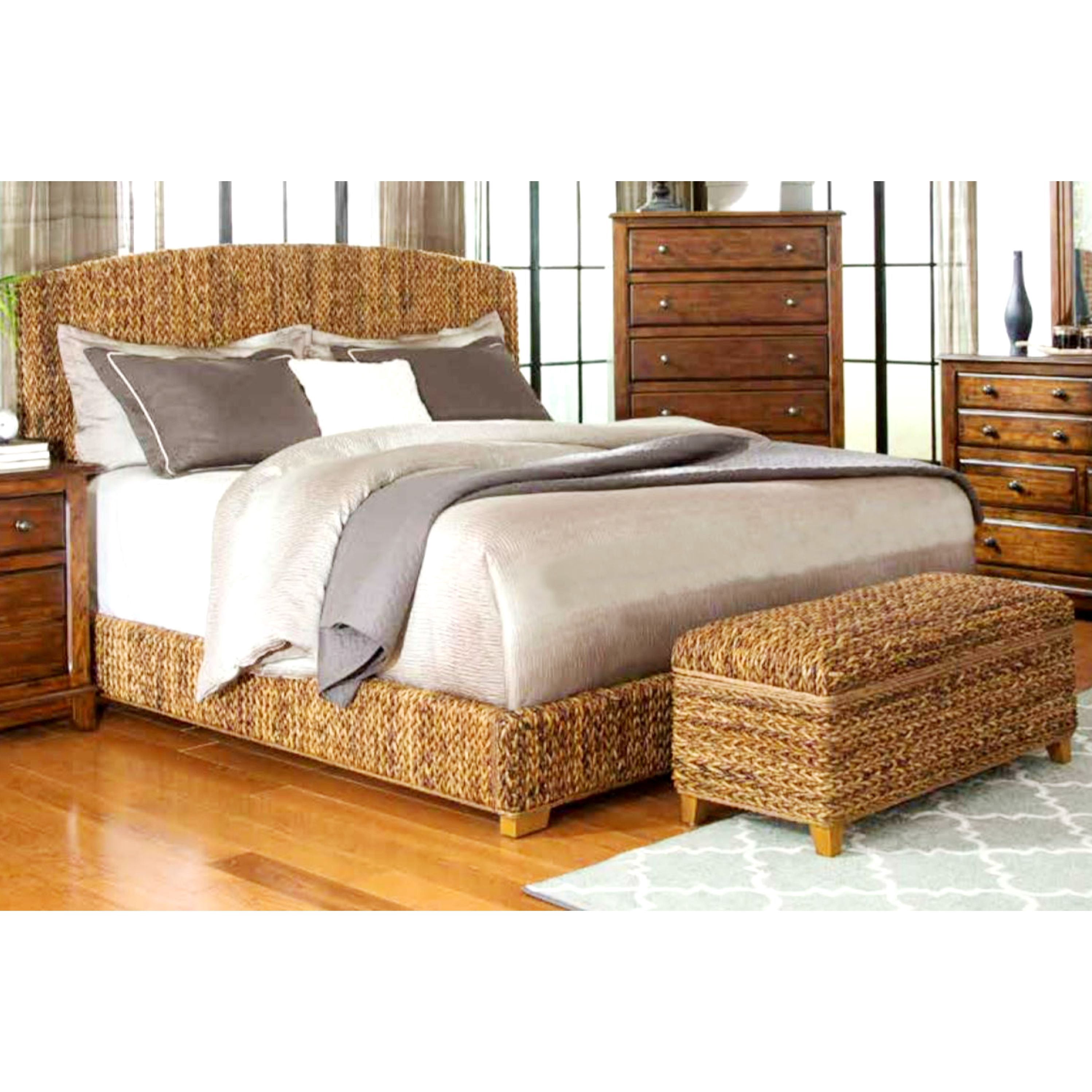 A Line Furniture Modern Country Style Hand Woven Banana Leaf Bed With Storage Ottoman Walmart Com Walmart Com