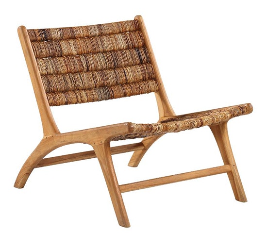 Dovetail Furniture Tsd8033 Living Room Bonnin Occasional Chair In Teak Wood With Banana Leaf Weave