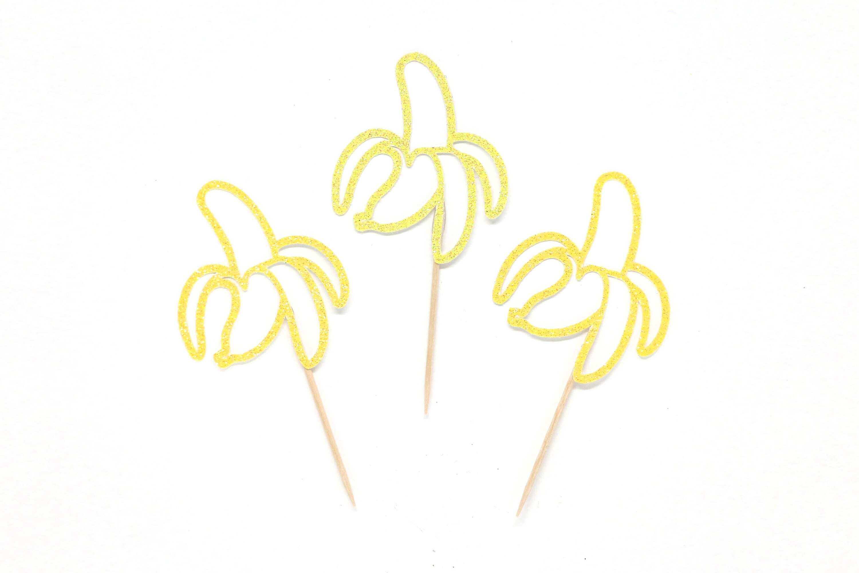 Banana Cupcake Toppers Glitter Tropical First Birthday Fiesta Decorations Banana Party Fruit Cupcake Toppers Fiesta Party Theme