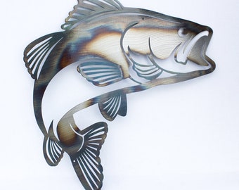 Bass Fishing Rustic Metal Art Lodge Decor Wall Hanging Fish Decor Wall Art Fish Art Metal Fish Wall Art