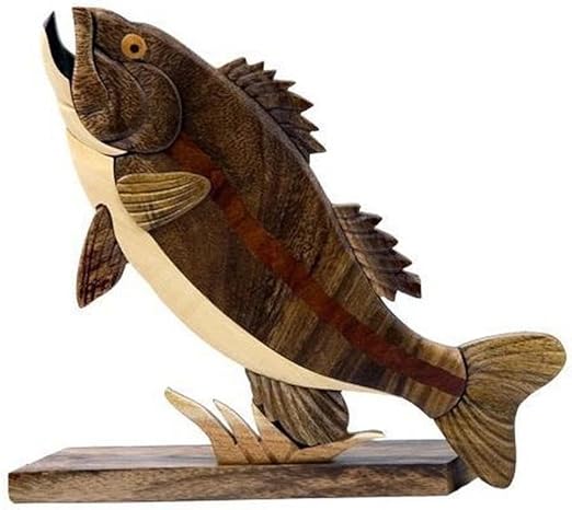 Amazon Com Largemouth Bass Fish Intarsia Wood Table Top Home Decor Lodge Fishing Kitchen Dining