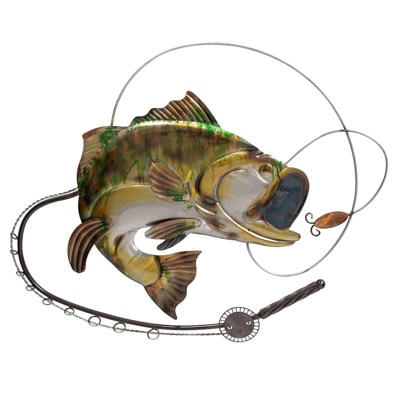 Distinctive Designs Fishing Decor Largemouth Bass Fish And Fishing Pole Metal Wall Decor 15