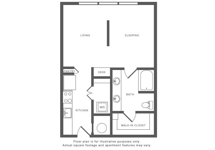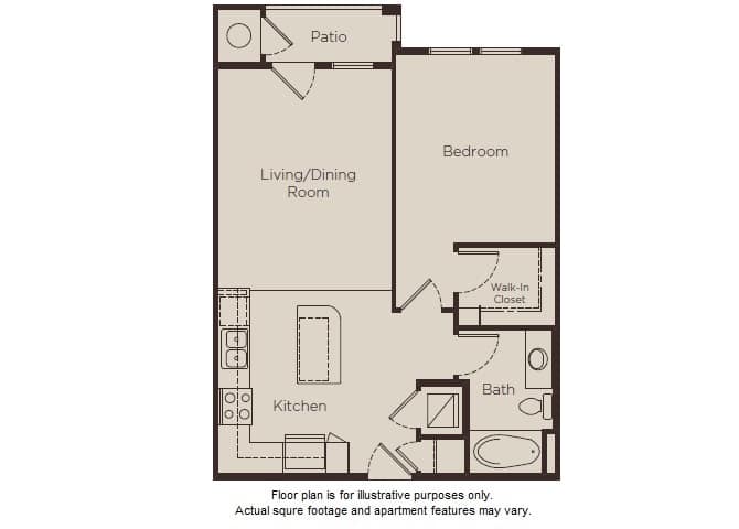 Studio Ada Floor Plans With 617 Square Feet Boasting A Bedroom Living Room With Patio Kitchen Bathroom And Walk In Closet Sonoma Hills Retirement Community