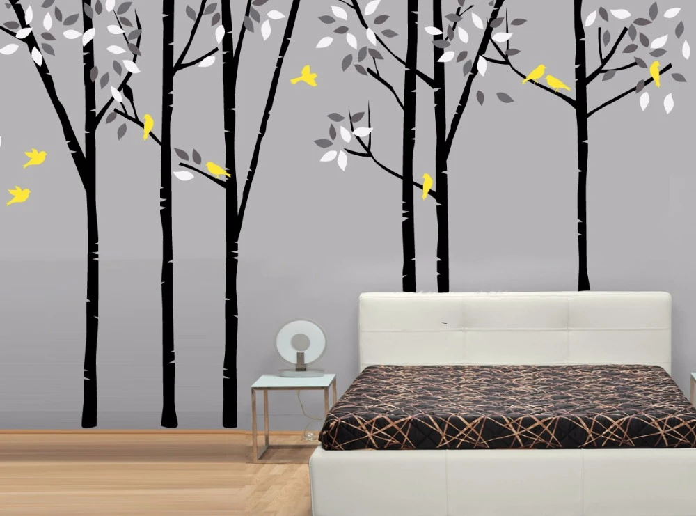 Large Birch Tree Forest With Birds Wall Sticker Decal For Kids Baby Nursery Living Room Home Decor Removable Diy Wallpaper A186 Birch Tree Home Decorwall Sticker Forest Aliexpress