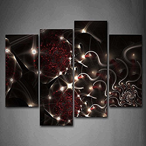 Painting Samples Of 4 Panel Abstract Art Black And Red Wall Art