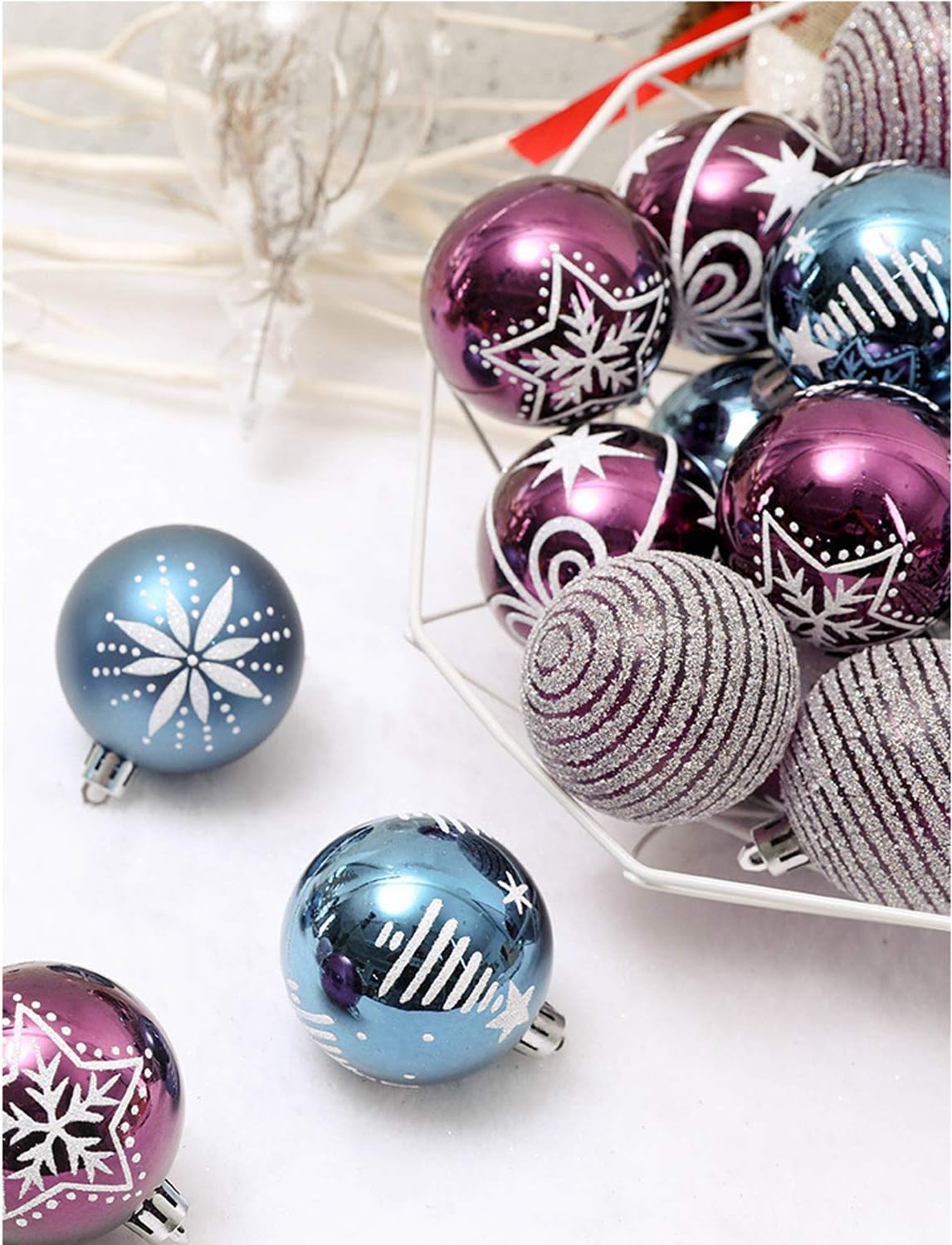 Sheliky Christmas Balls Christmas Tree Ornament Shatterproof Christmas Decorations Tree Balls For Holiday Xmas Party Decoration 24ct 6cm 2 36 Blue Purple Ball Ornaments Home Kitchen