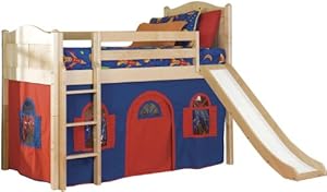 O Deals Bolton Furniture 9811200lt2br Cottage Low Loft Bed Natural With Bottom Bluered Curtain Playhouse And Slide Bunk Beds With Slide Beds Bed Frames Giuong