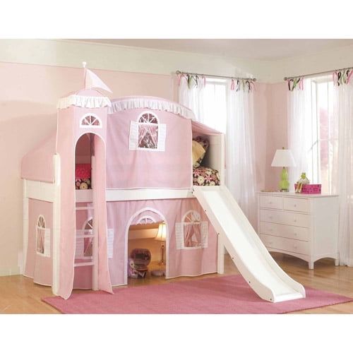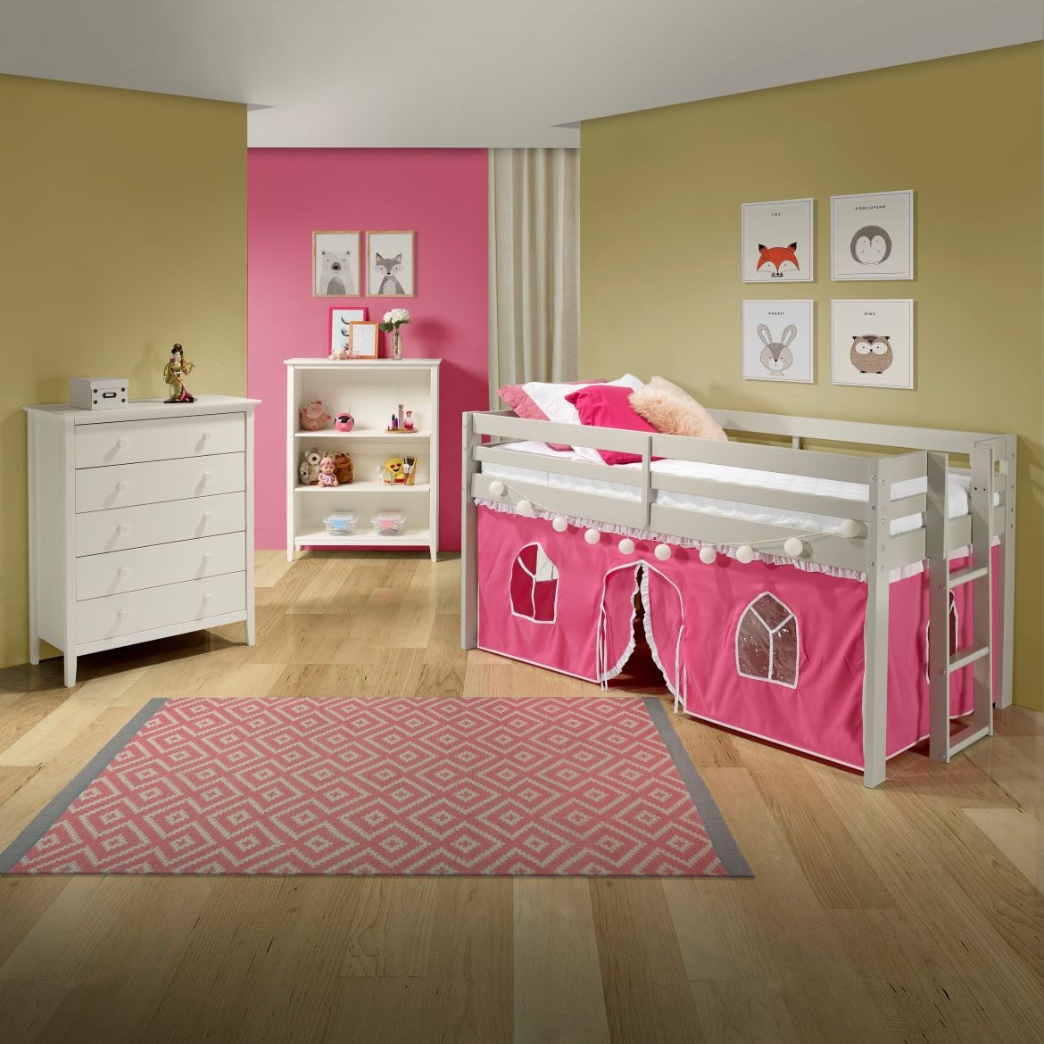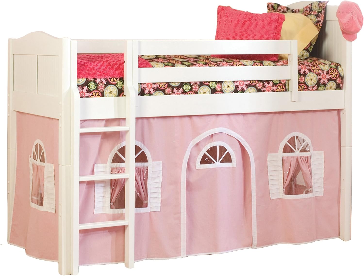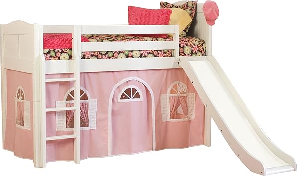 Amazon Com Bolton Furniture 9811200lt6br Cottage Low Loft White With Pink White Bottom Playhouse Curtain And Slide Furniture Decor