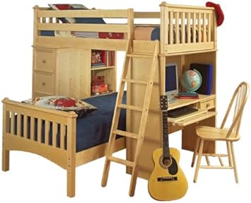 Amazon Com Bolton Cooley Sleep Study Storage Loft Bed Natural Furniture Decor