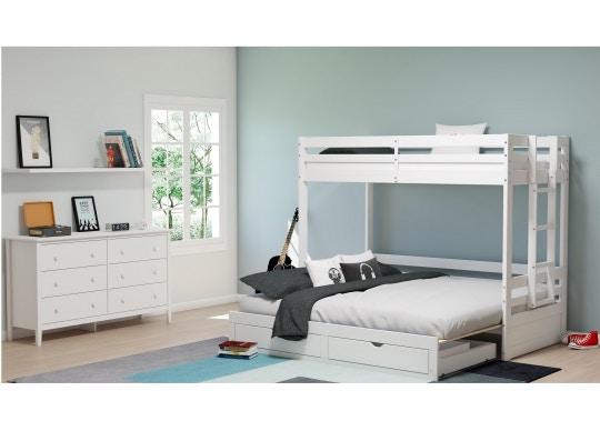 Bolton Furniture Inc Aurora White Twin Over Full Wood Bunk Bed With Tri Bunk Extension Storage Drawers Ajau04whs Goedekers Com