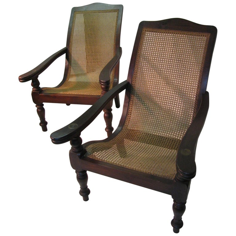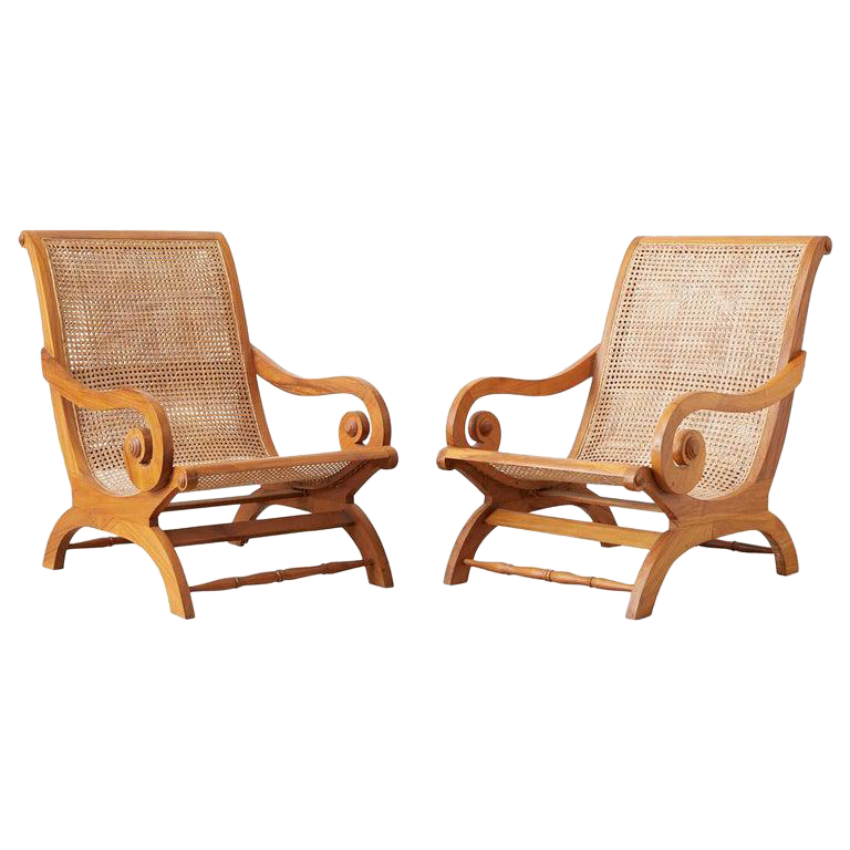Two British Colonial Antique Plantation Chairs Rattan Cane 1973545858