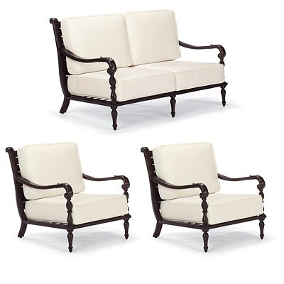 British Colonial 3 Pc Outdoor Loveseat Set Linen Flax With Logic Bone Piping Linen Flax With Logic Bone Piping Frontgate Patio Furniture Laurasndreyeva