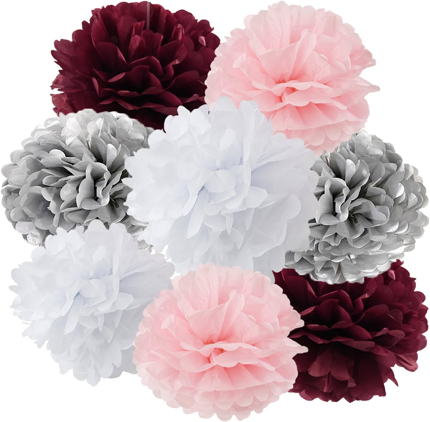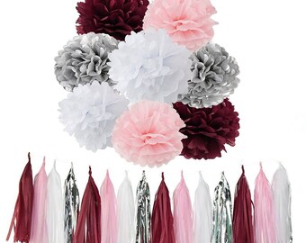 Waysla Bridal Shower Decorations Burgundy Pink Cream Silver Wedding Decorations Tissue Paper Pom Pom Tassel Garland Burgundy Pink Birthday Party Decorations Bachelorette Wedding Party Decorations Walmart Com Walmart Com