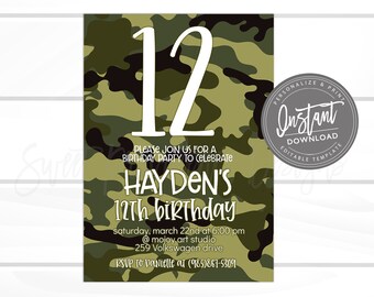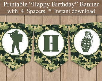 Printable Camouflage Party Supplies Military Birthday Decorations