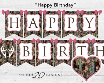 Personalized Gone Hunting Custom Deer Hunting Camo Birthday Party Bunting Banner And Decorations Happy Birthday Custom Name Banner Bigdotofhappiness Com