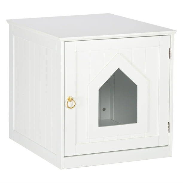 Pawhut 23 Wooden Covered Mess Free Cat Litter Box End Table Hideaway Cabinet With Storage White Walmart Com Walmart Com