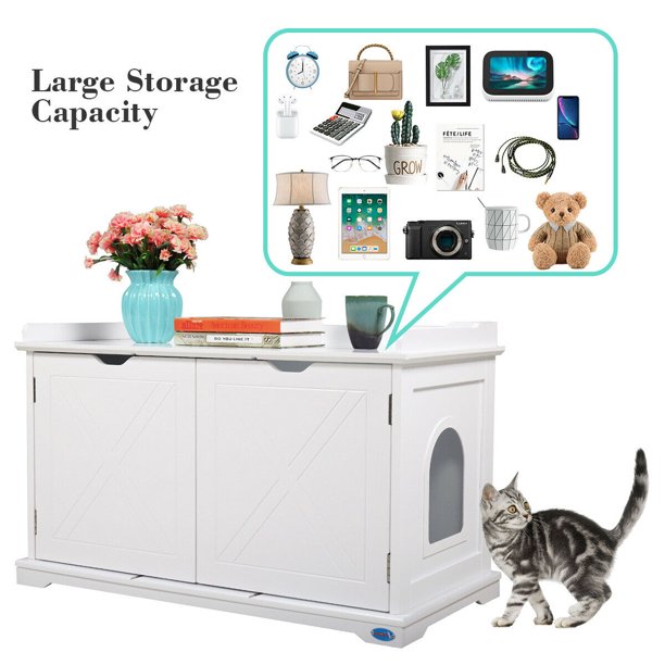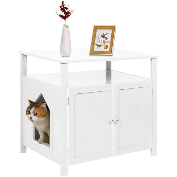 Zimtown 2 Door Wood Cat Litter Box Cover House Cat Washroom Litter Box Cover Hidden Cat Litter Boxes Enclosures Cabinet For Cats Night Stand Pet House White Walmart Com Walmart Com