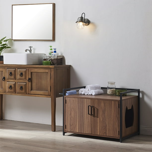 Ktaxon Double Door Wooden Cat Litter Box Enclosure Cabinet Indoor Hidden Pet Crate Cat House Bench Furniture Brown Walmart Com Walmart Com