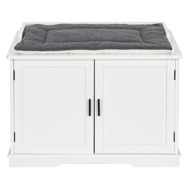 Coziwow Cat Washroom Storage Bench Wooden Litter Box Furniture Spacious Inner With Removable Panel Magnetized Double Doors Side Entrances White Walmart Com Walmart Com