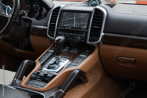 The Interior Of The Car Porsche Cayenne Diesel 958 2012 Year With A View Of The Navigation Display Dashboard Seats And Editorial Photography Image Of Drive Automotive 162270337
