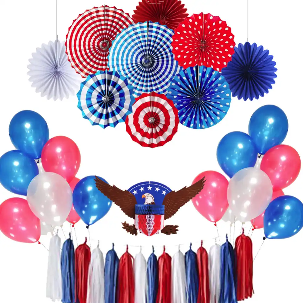 Amazon Com 29pcs 4th Fourth Of July Patriotic Decorations Set Red White Blue Paper Fans Usa Flag Pennant Star Streamer Pom Poms Hanging Swirls Party Decor Supplies Home Kitchen