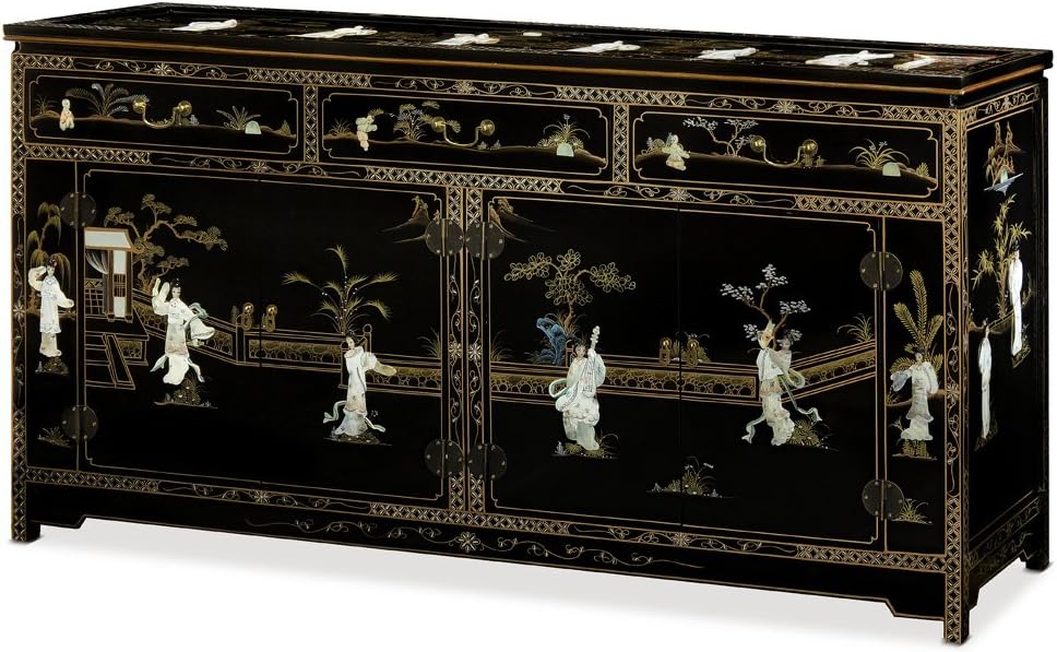 Amazon Com China Furniture Online Wooden Asian Sideboard Black Lacquer Chinoiserie With Mother Of Pearl Maiden Kitchen Dining Room Furniture