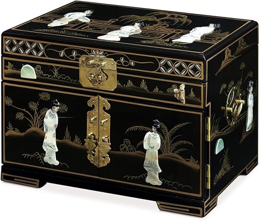 Amazon Com China Furniture Online Wooden Asian Jewelry Chest Black Lacquer Chinoiserie With Pearl Maidens Jewelry