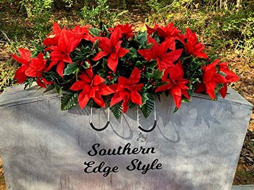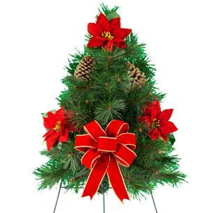 Sympathy Silks Artificial Cemetery Flowers Realistic Outdoor Grave Decorations Non Bleed Colors And Easy Fit Tree On Easel With Poinsettias Pinecones Walmart Com Walmart Com