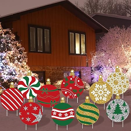Amazon Com Elcoho 10 Pieces Christmas Balls Yard Signs Christmas Yard Signs Lawn Decorations Holiday Yard Signs Lawn Decorations With Stake For Christmas Decorations Garden Outdoor