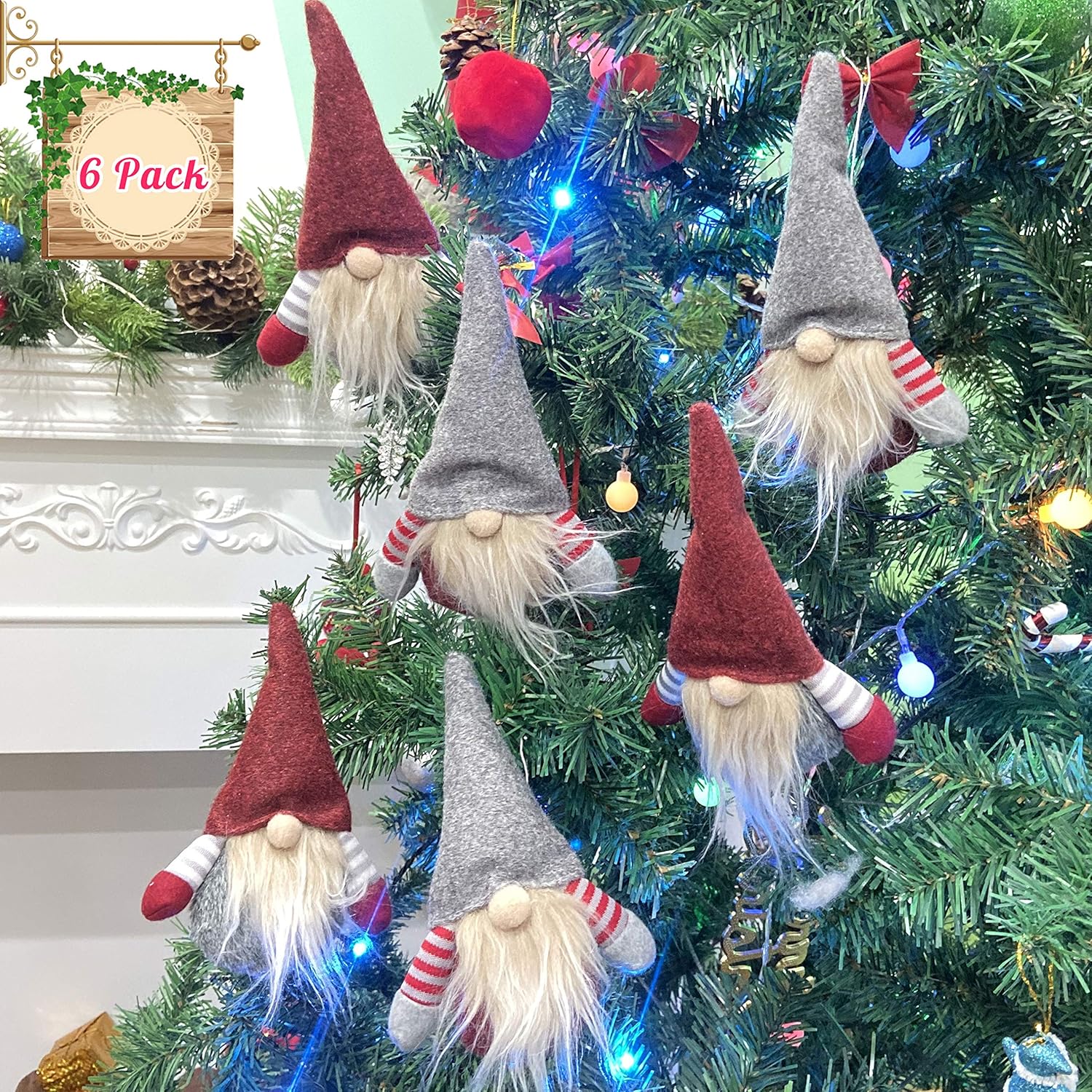 Amazon Com Houwsbaby 6 Pcs Little Swedish Gnome Christmas Tree Decorations Kit Xmas Tree Pendants Handmade Plush Tomte Nisse Small Scandinavian Nordic Hanging Decor Holiday Ornament Party Accessories 7 5 Home Kitchen