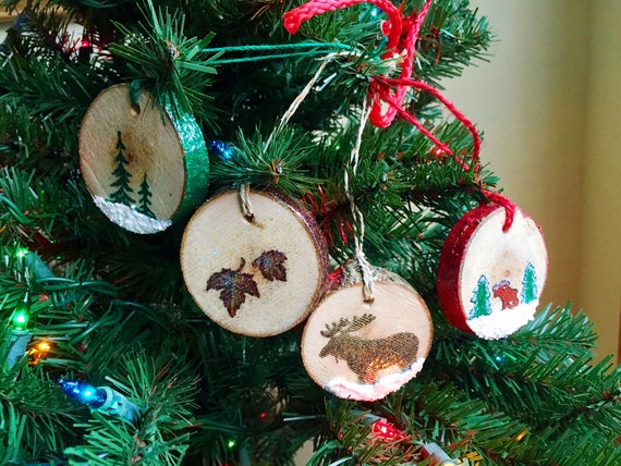 Birch Wood Christmas Tree Ornament Set Forest Hostess Gifts Etsy