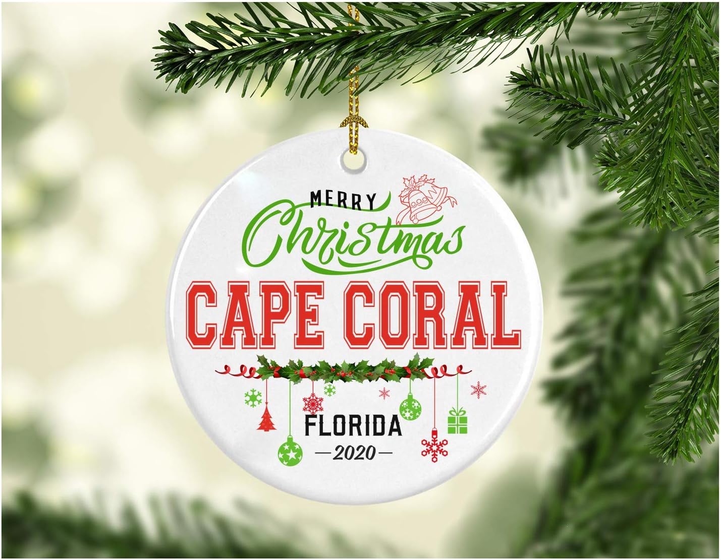 Amazon Com Christmas Decorations Tree Ornament Gifts Hometown State Merry Christmas Cape Coral Florida 2020 Gift For Family Rustic 1st Xmas Tree In Our New Home 3 Inches White Kitchen Dining