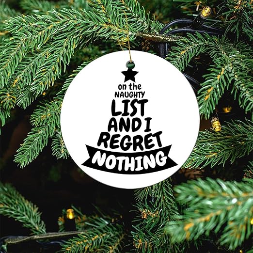 Amazon Com Nobrands On The Naughty List And I Regret Nothing Christmas Tree Funny Gift Round Souvenir Christmas Ornament Ceramics Christmas Tree Decorations Keepsake Xmas Pandemic Christmas Ornament Gifts Home Kitchen