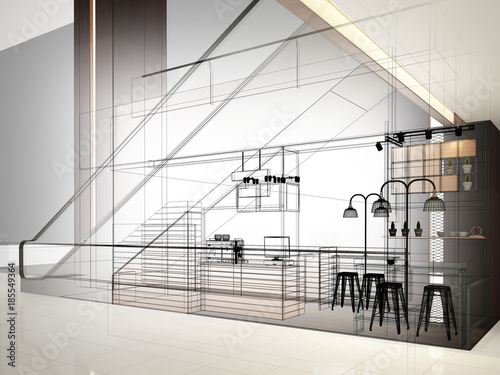 Sketch Design Of Coffee Shop 3d Wire Frame Render Stock Photo C Yaryhee 83951046