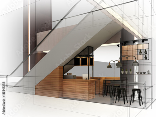 Sketch Design Of Coffee Shop 3d Wire Frame Render Stock Photo C Yaryhee 83951720