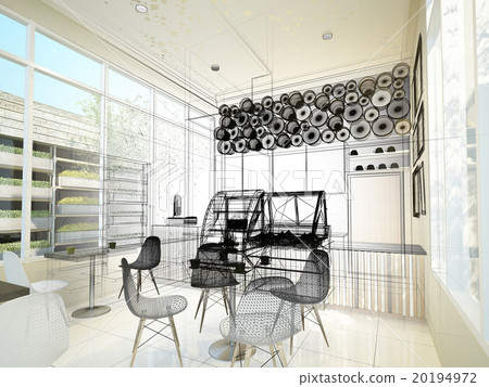 Sketch Design Of Coffee Shop 3dwire Frame Render Stock Illustration 20194972 Pixta