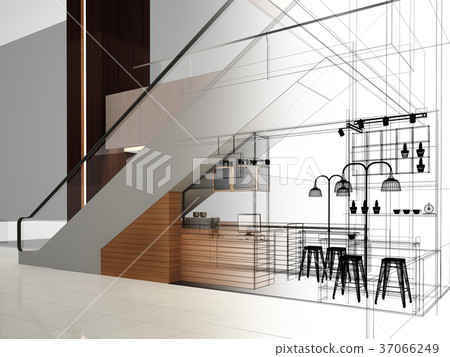 Sketch Design Of Coffee Shop 3d Rendering Stock Illustration 37066249 Pixta