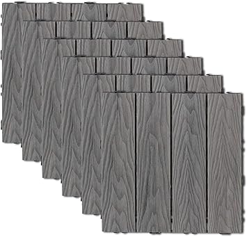 Amazon Com Ecoopts 20 X20 X6 Deck Tiles Wood Patio Pavers Flooring Interlocking Composite Tile For Indoor Outdoor Decking 6 Slat 1 Pack Grey Home Improvement